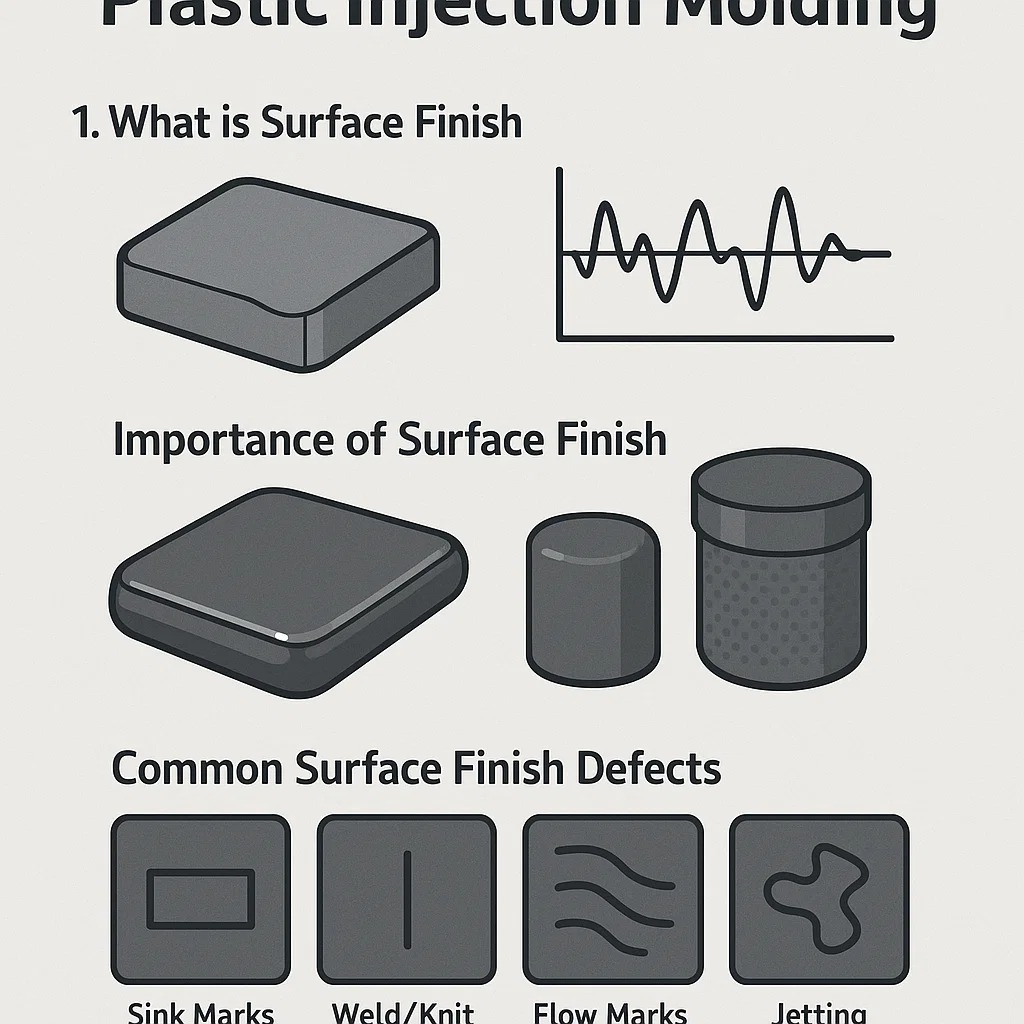 - শিল্প মান: দ plastics industry often uses the এসপিআই (প্লাস্টিক শিল্পের সোসাইটি) সারফেস ফিনিশ শ্রেণীবিভাগ , যা আয়না (ক-গ্রেড) থেকে ম্যাট/নিস্তেজ (ডি-গ্রেড) পর্যন্ত। একটি ছাঁচ ডিজাইন করার সময় একটি SPI গ্রেড নির্দিষ্ট করা আদর্শ অনুশীলন।