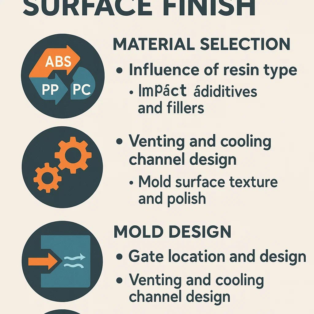 উপাদান নির্বাচন, ছাঁচ নকশা, এবং প্রক্রিয়াকরণ পরামিতিগুলির ভারসাম্য বজায় রেখে প্লাস্টিক ইনজেকশন ছাঁচনির্মাণে সর্বোত্তম সারফেস ফিনিশ কীভাবে অর্জন করা যায় তা এই বিস্তৃত নির্দেশিকা বিশদ বিবরণ দেয়। এটি R এর মত মূল মেট্রিক্স সংজ্ঞায়িত করে a মান এবং SPI ফিনিশ স্কেল, তারপরে ছাঁচ পলিশিং, লেজার টেক্সচারিং এবং উন্নত ছাঁচের তাপমাত্রা নিয়ন্ত্রণের মতো কৌশলগুলি অন্বেষণ করে। অবশেষে, নিবন্ধটি ন্যানো টেক্সচারিং এবং স্ব-নিরাময় পলিমার সহ ভবিষ্যতের প্রবণতাগুলির উপর একটি নজর দিয়ে উপসংহারে সিঙ্ক চিহ্ন এবং ওয়েল্ড লাইনের মতো সাধারণ ত্রুটিগুলির জন্য পদ্ধতিগত সমাধান প্রদান করে৷
