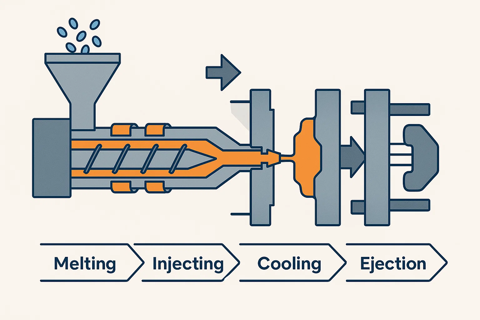 এটি কীভাবে কাজ করে: গলে যাওয়া, ইনজেকশন, শীতলকরণ এবং ইজেকশন