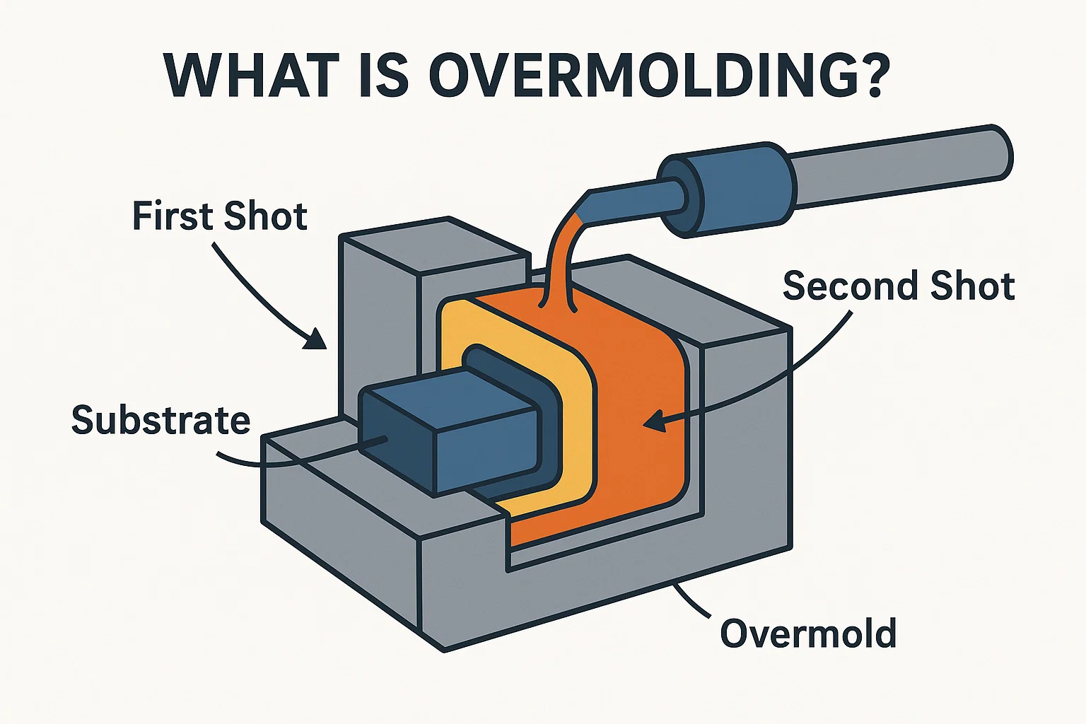 ওভারমোল্ডিং একটি বিশেষায়িত ইনজেকশন ছাঁচনির্মাণ প্রক্রিয়া যা বহু-পদার্থের অংশগুলির ধারণাটি আরও এক ধাপ এগিয়ে নিয়ে যায়। এটিতে একটি উপাদান mold ালাই জড়িত-সাধারণভাবে একটি নরম, নমনীয় থার্মোপ্লাস্টিক-একটি প্রাক-বিদ্যমান অংশ বা সাবস্ট্রেট, যা সাধারণত একটি অনমনীয় প্লাস্টিক বা ধাতু। এটি উভয় উপকরণের সম্মিলিত বৈশিষ্ট্য সহ একটি একক, সংহত উপাদান তৈরি করে।