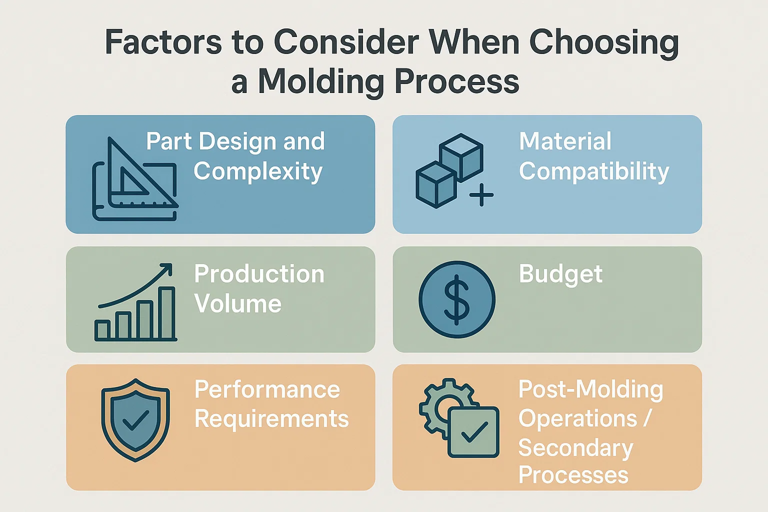 ছাঁচনির্মাণ প্রক্রিয়াটি বেছে নেওয়ার সময় বিষয়গুলি বিবেচনা করা উচিত