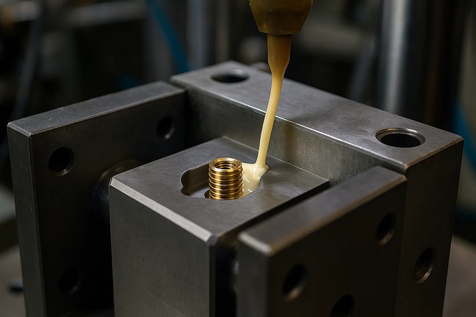 উপাদান ইনজেকশন: গলিত প্লাস্টিক (থার্মোপ্লাস্টিক বা থার্মোসেট) ছাঁচের গহ্বরের মধ্যে উচ্চ চাপের মধ্যে ইনজেকশন করা হয়, চারপাশে প্রবাহিত হয় এবং সন্নিবেশগুলি এনস্যাপুলেট করে। উপাদানটি সমস্ত ভয়েডগুলি পূরণ করে, সন্নিবেশ সহ একটি শক্তিশালী বন্ড বা যান্ত্রিক লক তৈরি করে।