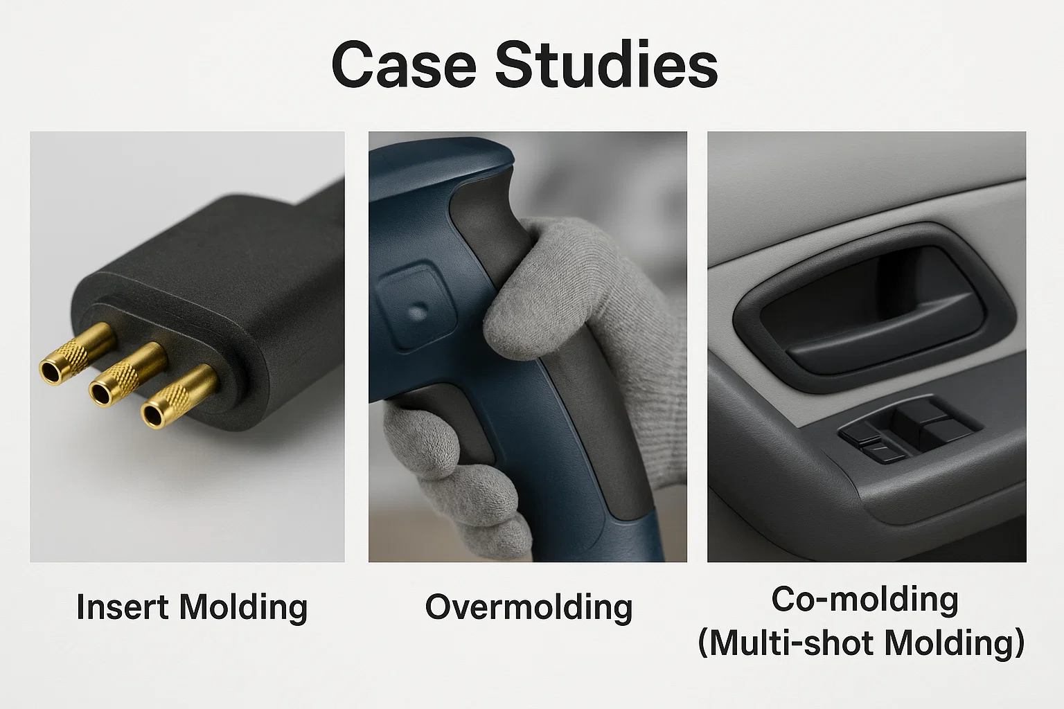 প্রতিটি ছাঁচনির্মাণ প্রক্রিয়াটির ব্যবহারিক প্রয়োগ এবং সুবিধাগুলি চিত্রিত করার জন্য, আসুন বাস্তব-বিশ্বের উদাহরণগুলি অন্বেষণ করা যাক যেখানে ing ালাই, ওভারমোল্ডিং এবং কো-মোল্ডিংটি উদ্ভাবনী এবং দক্ষ পণ্যগুলি তৈরি করতে সফলভাবে নিযুক্ত করা হয়েছে।